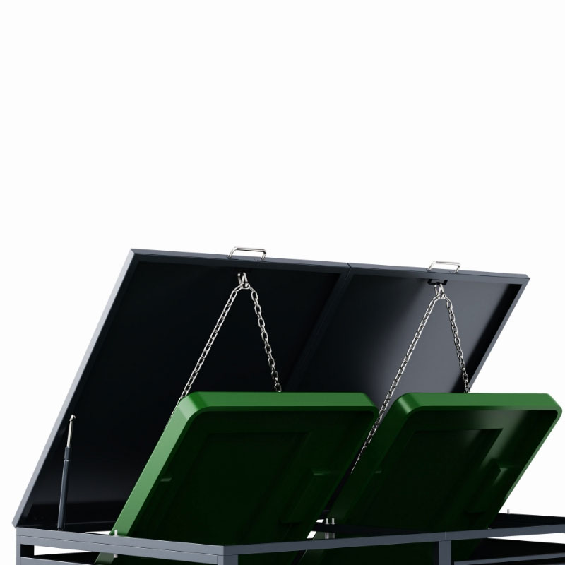 Les portes indépendantes facilitent l’accès le jour de collecte… plus besoin de tout ouvrir pour sortir un seul bac !