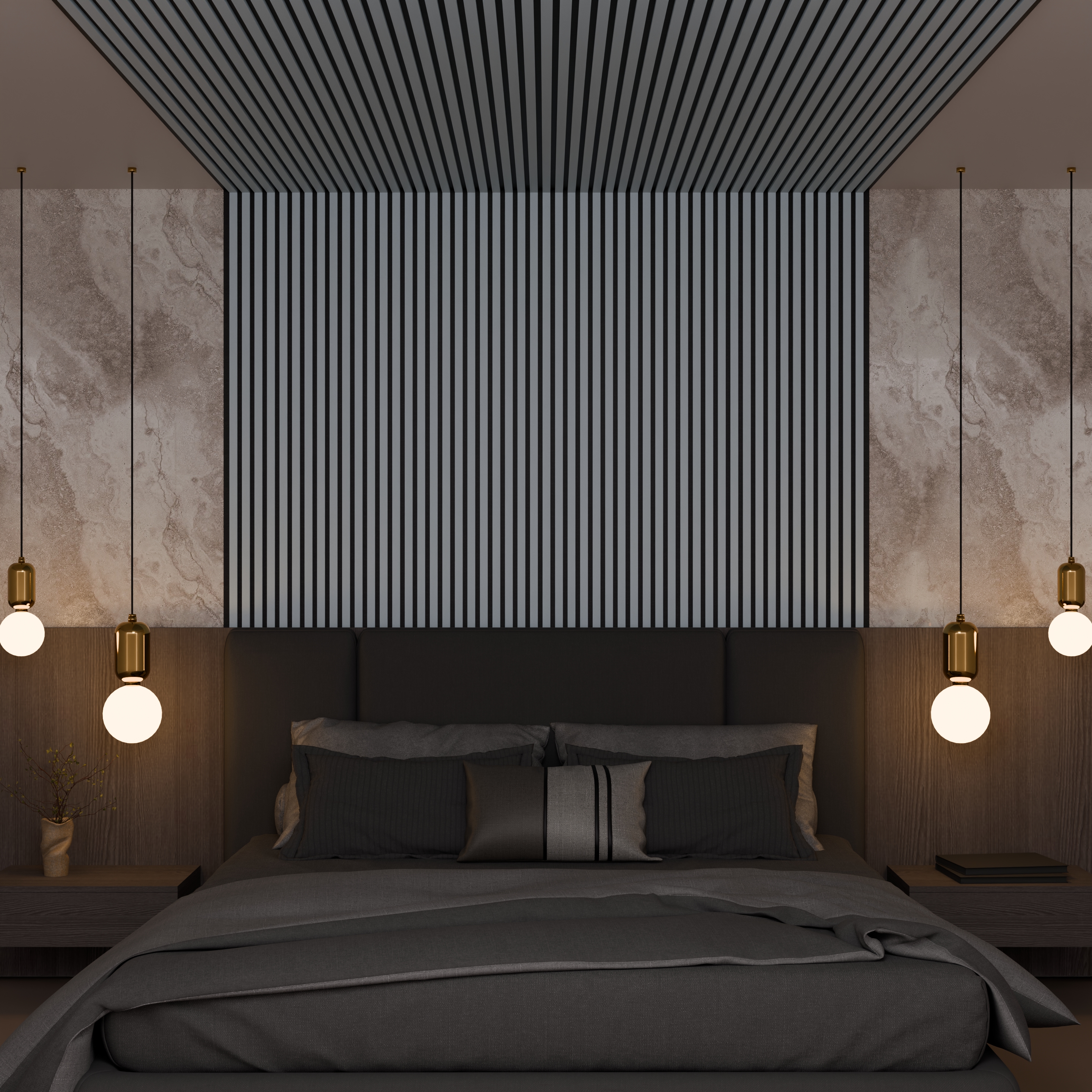 • Une finition en lattes de MDF (fibre de bois à densité moyenne), recouvertes d’un placage esthétique et résistant, alliant durabilité et élégance.