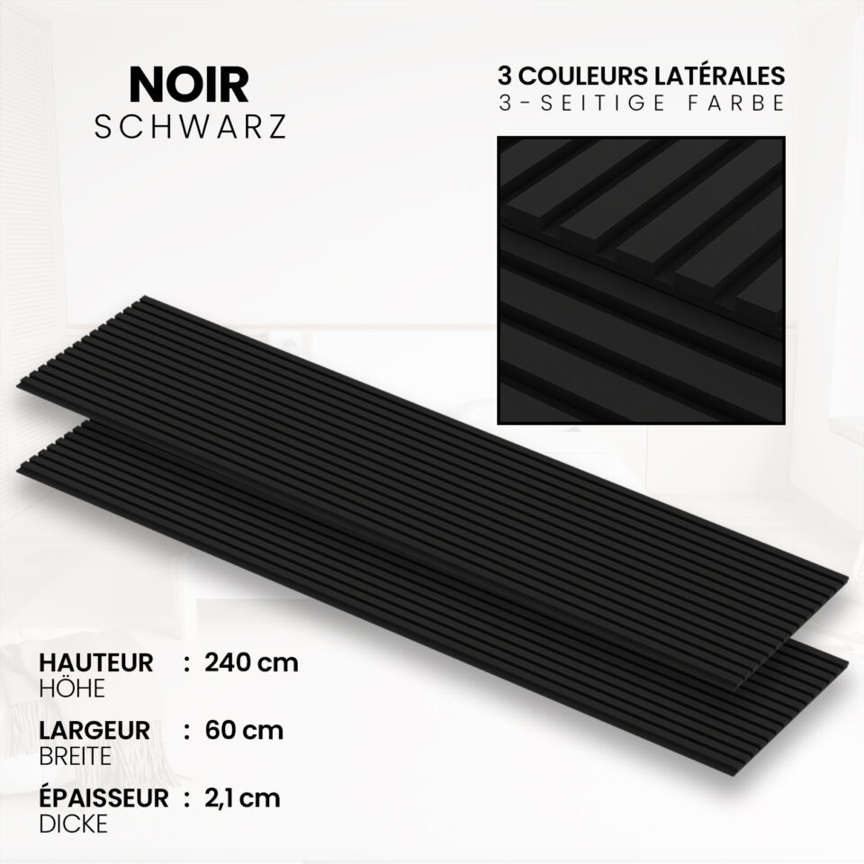 Panneau Acoustique – Gris Cuir – Feutrine Noire – 240x60x1.1cm – Lot de 4
