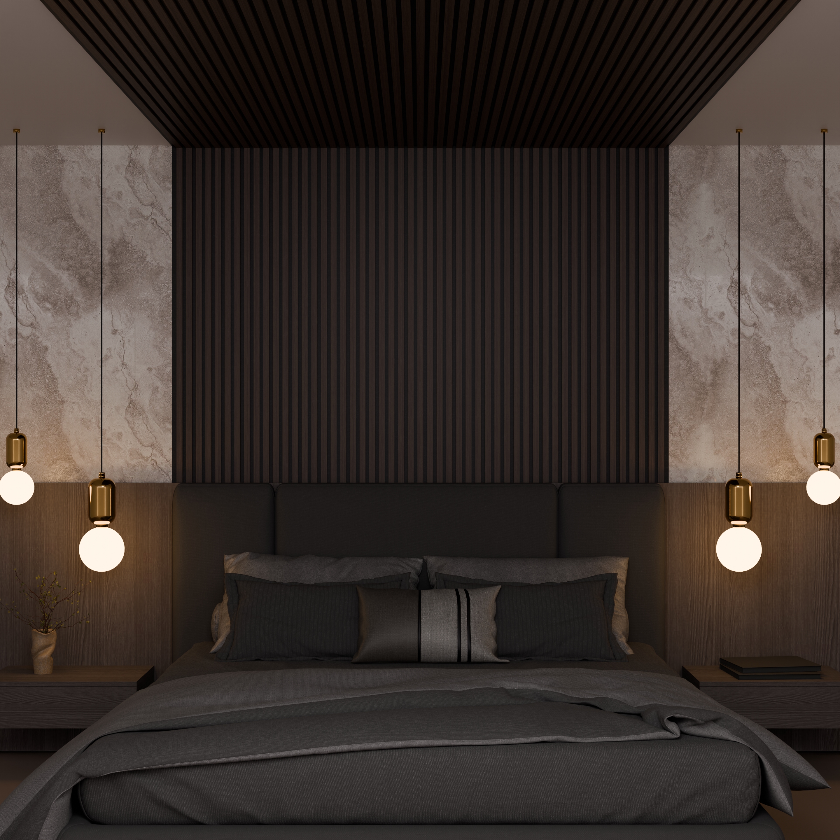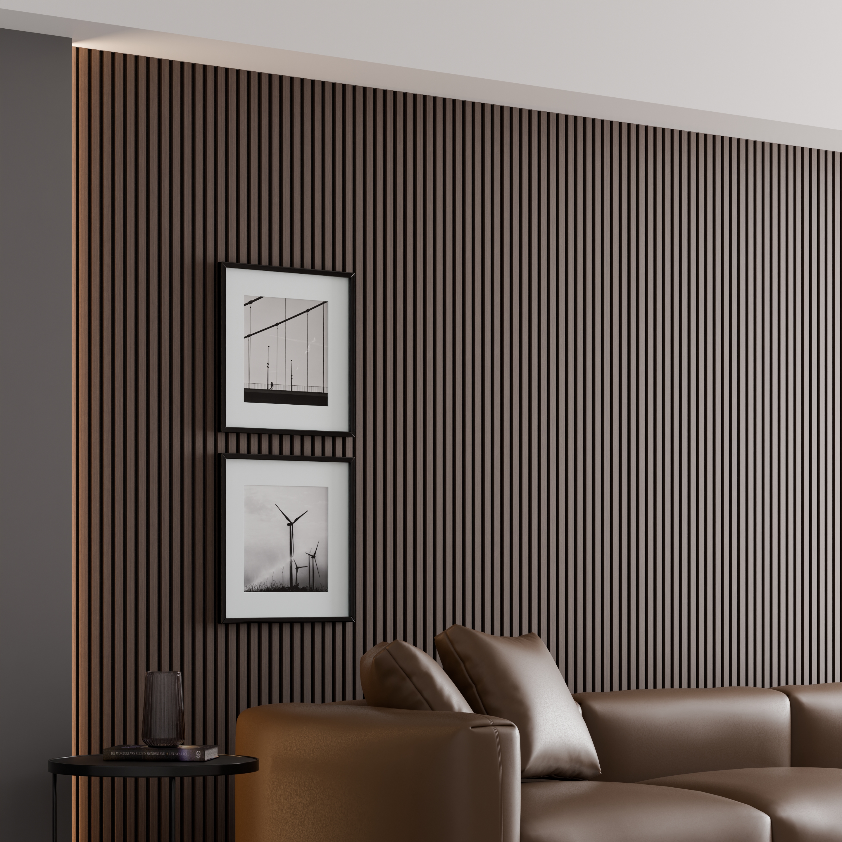 Une finition en lattes de MDF (fibre de bois à densité moyenne), recouvertes d’un placage esthétique et résistant, alliant durabilité et élégance.