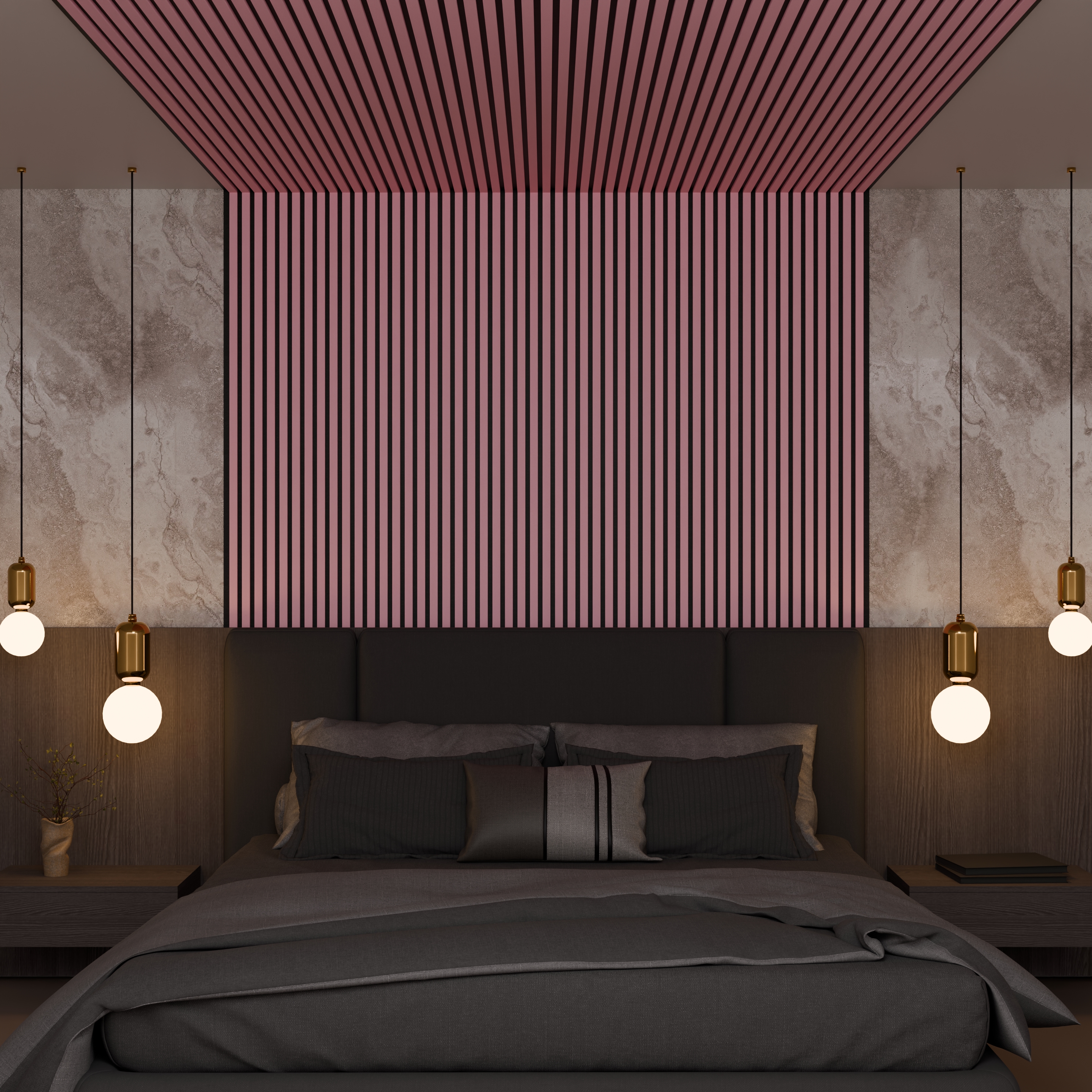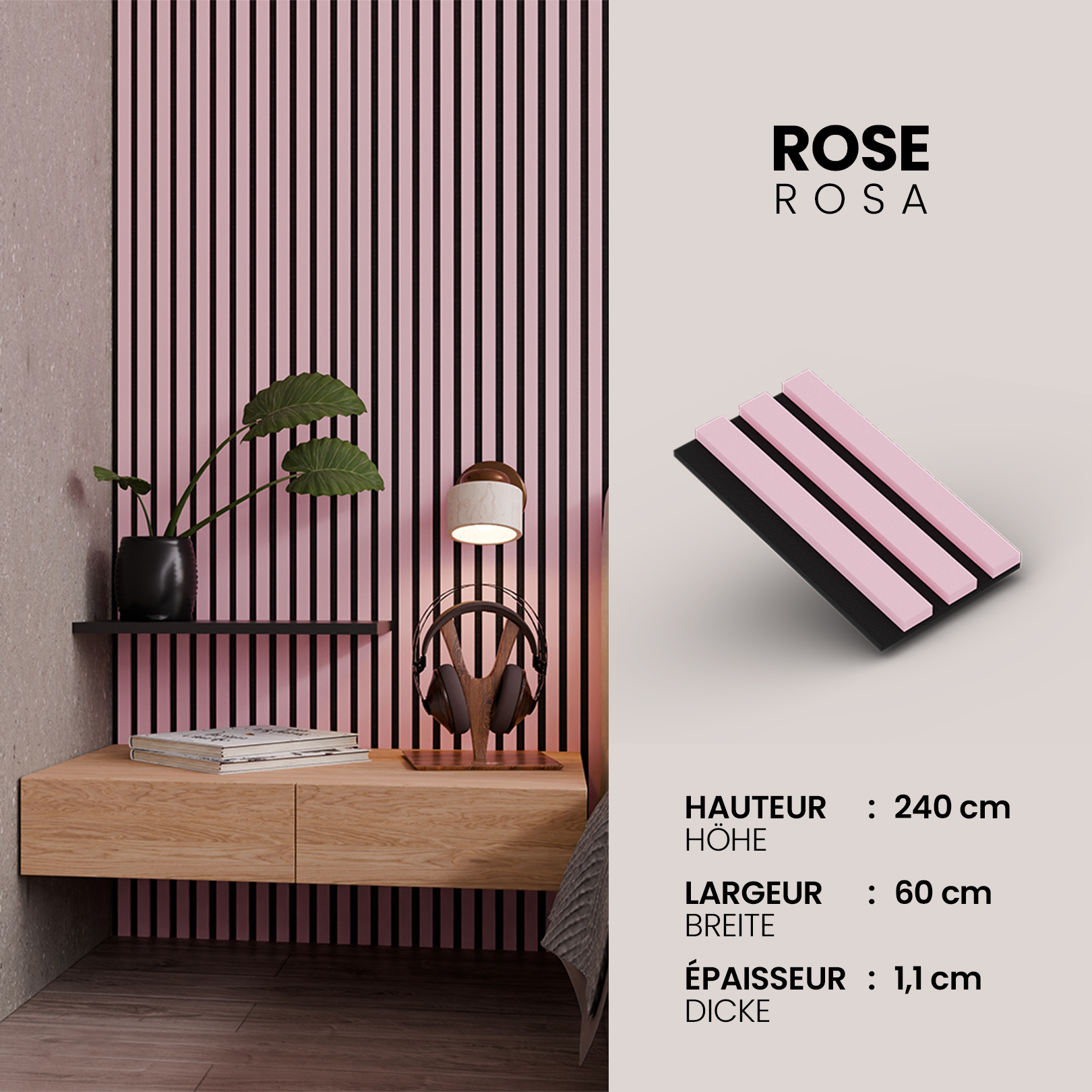Panneau Acoustique – Rose – Feutrine Noir – 240x60x1.1cm – Lot de 4