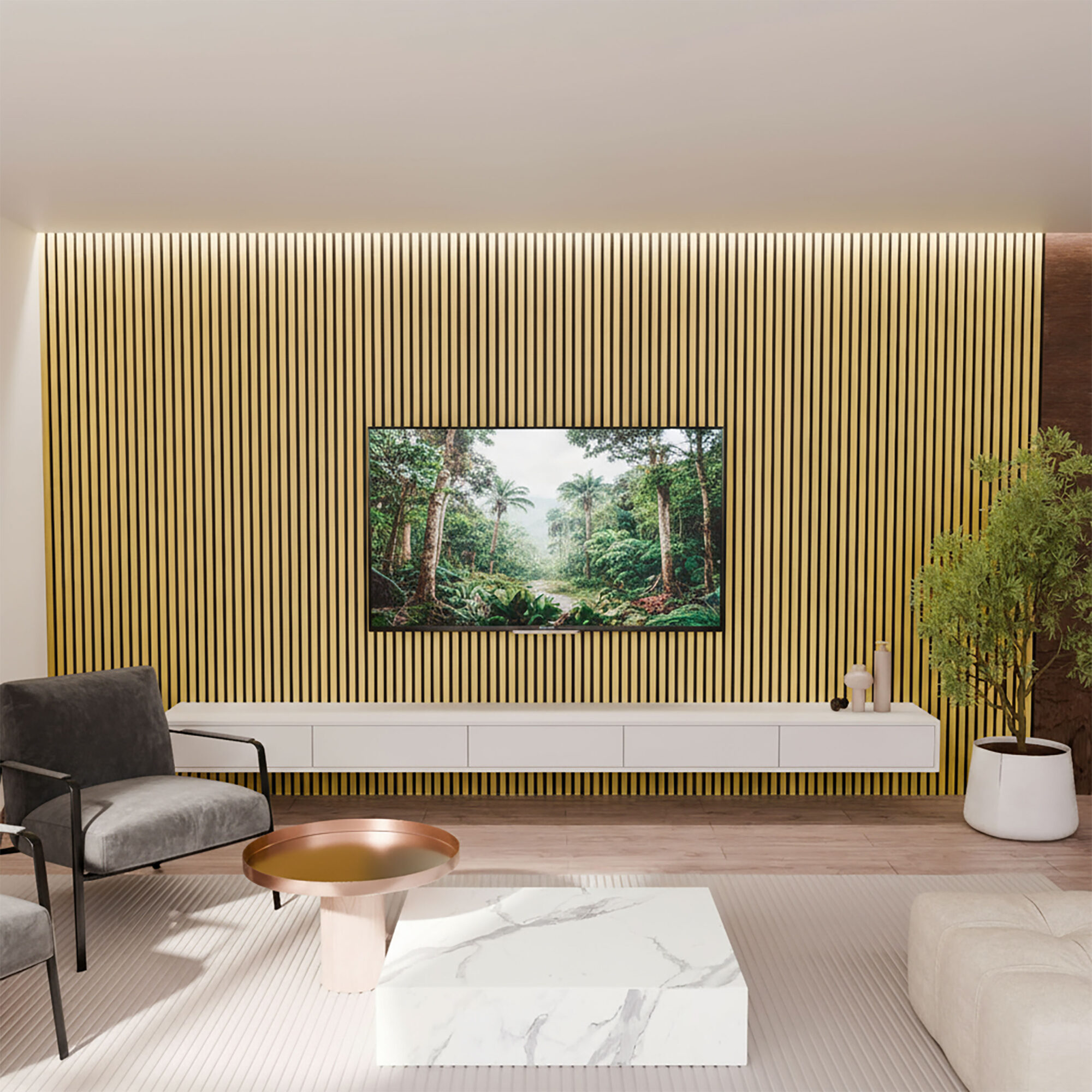 Chaque panneau Trivashop couvre 1,44 m² (l’équivalent d’une porte standard). Pour un traitement acoustique qui s’entend vraiment, couvrez entre 30 et 40 % de vos murs. Voici quelques repères pratiques :