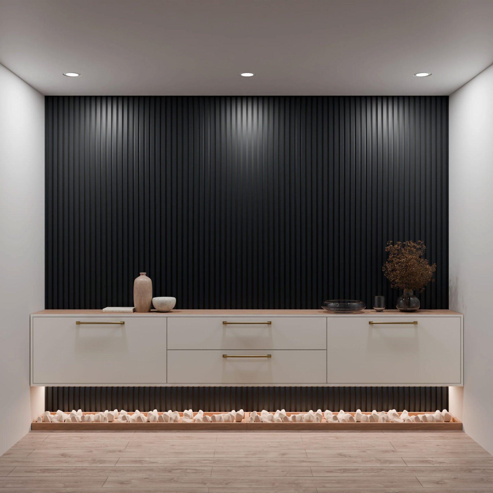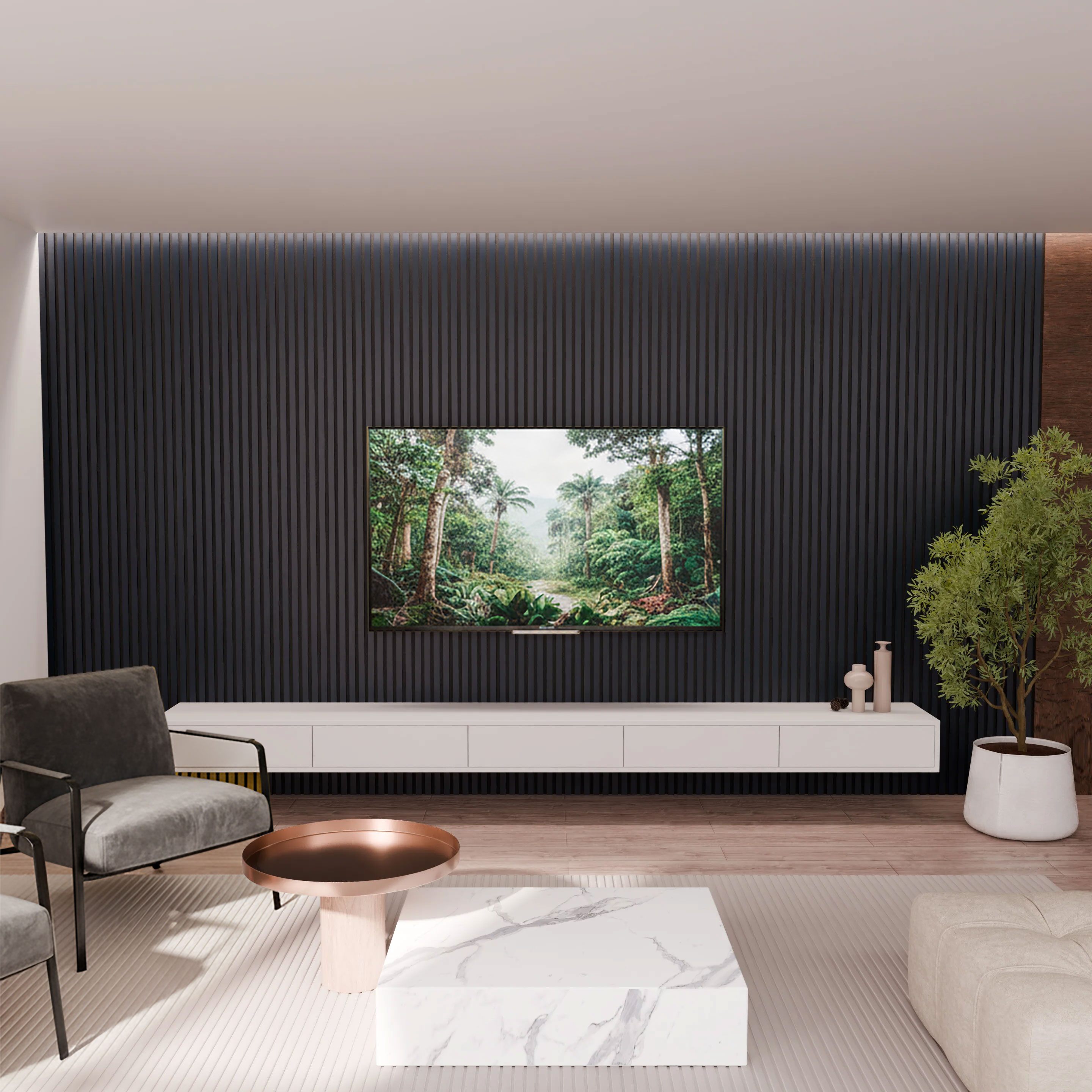 Votre panneau Trivashop combine 5 mm de feutrine issue de plastiques recyclés avec 6 mm de lattes MDF recouvertes d’un revêtement noir mat résistant. Cette finition noire uniforme se fond dans n’importe quel décor contemporain… avec une certaine élégance !