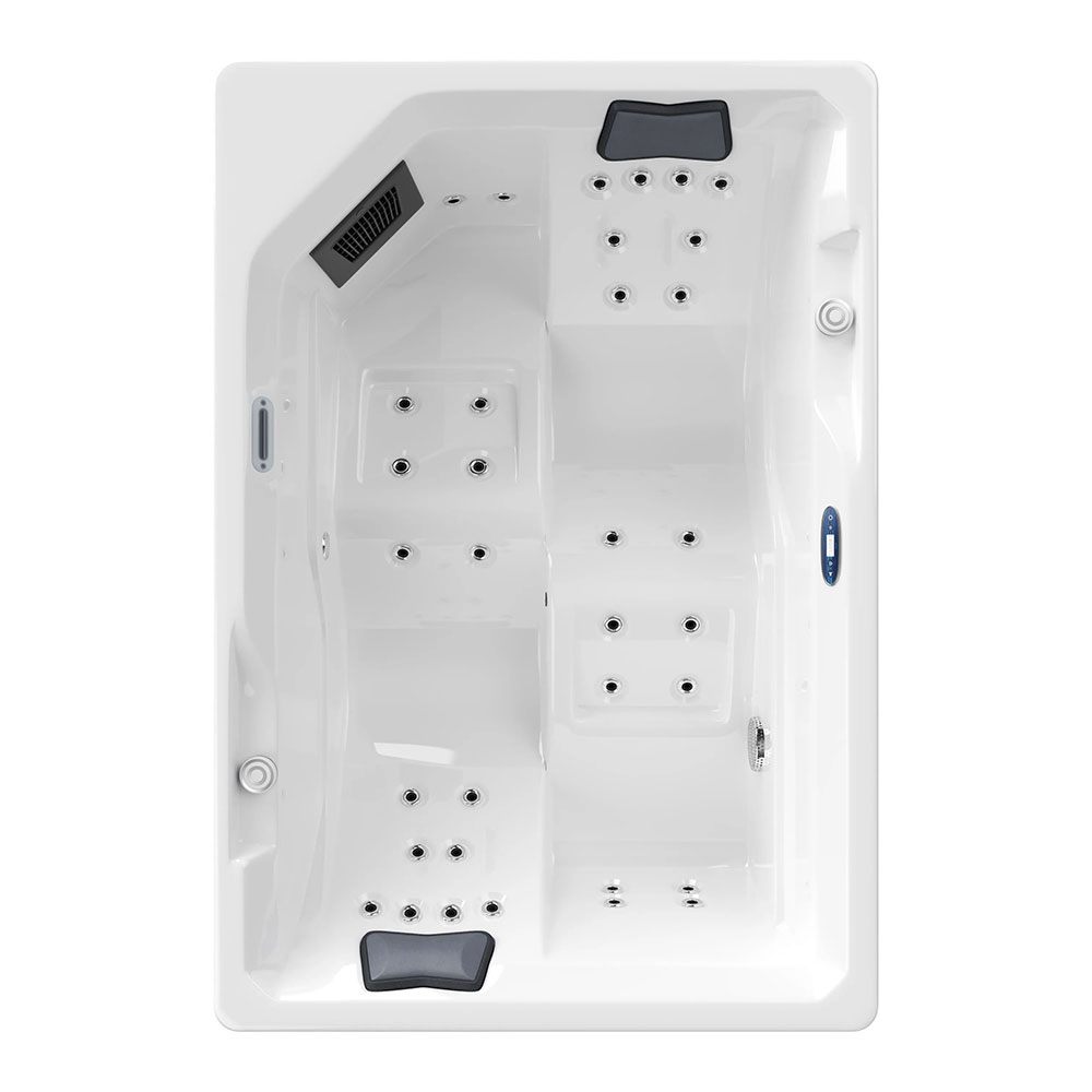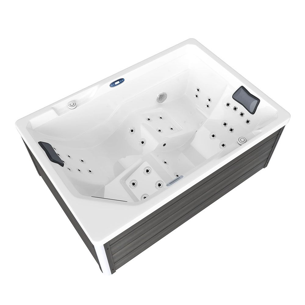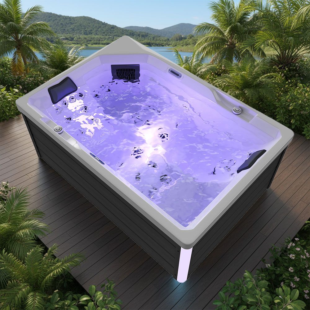 Ce spa compact embarque l’essentiel du confort aquatique dans ses dimensions réduites. Les 34 jets hydromassants se répartissent stratégiquement sur les deux places allongées : chaque zone du corps reçoit son massage dédié, des cervicales jusqu’aux pieds. La pompe 2HP double vitesse fait circuler l’eau avec deux modes : détente douce pour les soirées calmes, massage tonique pour délasser les muscles après le sport.