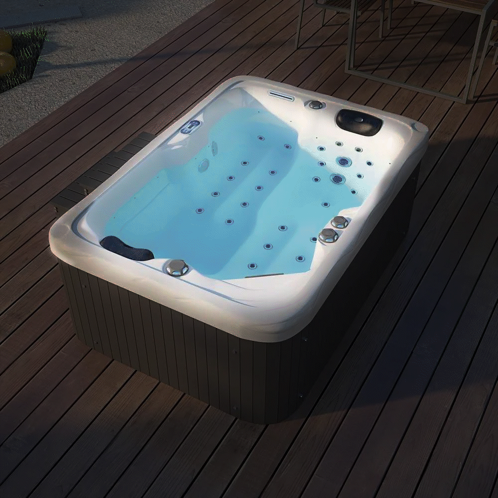 Voici le spa duo parfait pour les couples qui veulent profiter des plaisirs de l’eau et de l’hydromassage en toute intimité. Le PS-J6012 offre deux places allongées spacieuses où vous vous détendez côte à côte, chacun avec son propre programme de massage grâce aux 41 jets répartis sur tout le corps. Ce format rectangulaire compact trouvera sa place sur une petite terrasse ou dans un coin de jardin. Les 900 litres d’eau montent vite en température pour des bains improvisés après le travail. Apéro dans l’eau chaude face au coucher de soleil, soirée romantique sous les étoiles, ou simple moment de décompression après une journée stressante…